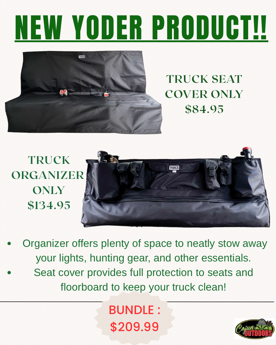 Keep your truck clean and organized with Yoder's new organizer and seat cover. Available individually or in a bundle!